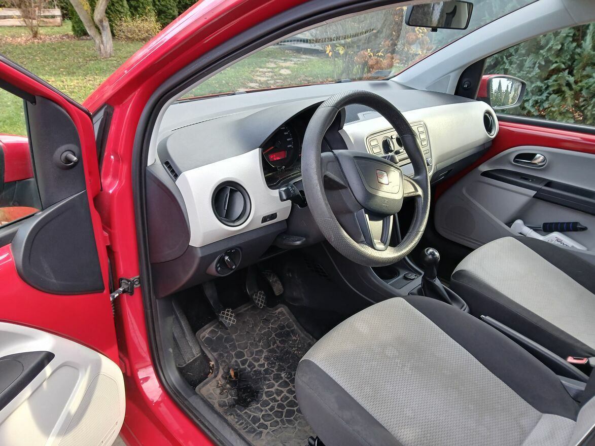 Sprzedam Seat Mii, garażowany, rok. prod. 2013, VIN: VSSZZZAAZDD329156, kolor czerwony, oryginalny przebieg 96 240 km, silnik 75 KM, Pojemność: 999 cm3, 5-drzwiowy, 4 miejscowy, przyciemniane szyby (tylna i tylne boczne), centralny zamek, obecnie na felgach z oponami zimowymi (dodatkowy komplet kół z oponami letnimi w zestawie), benzyna, niskie spalanie - w trasie poniżej 5 l, w mieście – 5,5 l, łańcuszek rozrządu, stan techniczny pojazdu – idealny (niewymagający żadnych nakładów finansowych). Drugi właściciel – auto zakupione w 2020 roku, z przebiegiem 71 000 km. Ekonomiczny, idealny do jazdy i parkowania w mieście. Auto w ciągłej eksploatacji. Przegląd techniczny ważny do 23.04.2026 roku. Cena: 18 600 zł (możliwość negocjacji ceny). Tel. do kontaktu: 605 - pokaż numer telefonu - . Miejscowość: Ostromecko k. Bydgoszczy.Sprawdź zainteresowanie tym ogłoszeniem